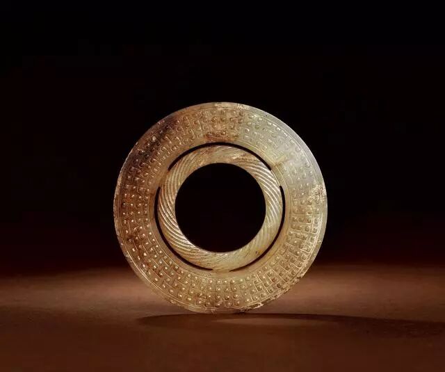 战国 勾连谷纹绞丝纹双联玉环