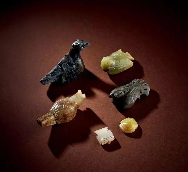 文化期﹣汉 玉鸟形器五件、松石鸟一件