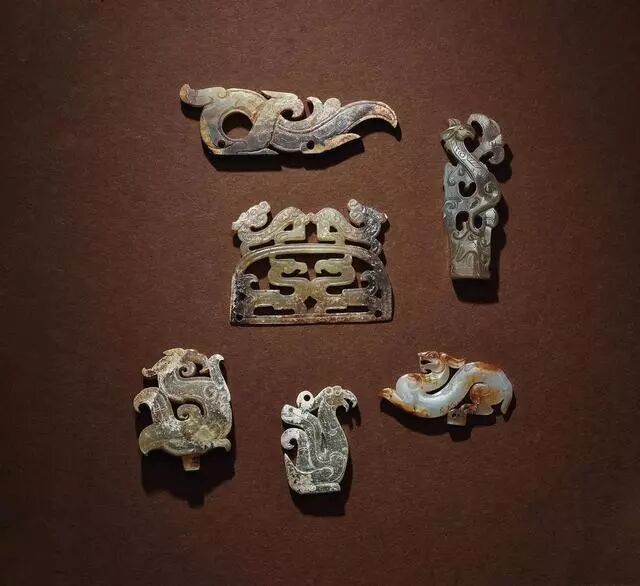 战国﹣汉 玉螭龙、凤鸟饰件 (一组六件)