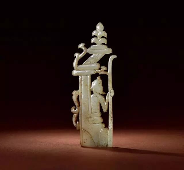 汉 玉镂雕侍卫嵌饰