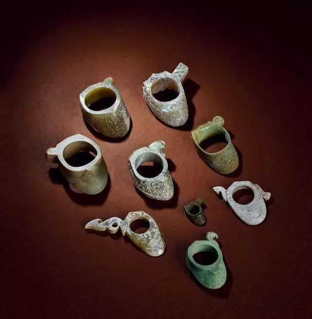 战国 玉韘五件、松石韘四件
