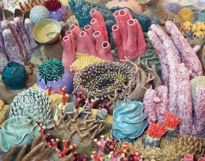美国陶瓷艺术家Courtney Mattison(考特尼麦蒂森)选择的珊瑚作为媒介。珊瑚作为海底最为常见的物种,或许并没有那么特别,但在Mattison的手上,这个族群蜕变成大型的陶瓷艺术装置,以艺术的形式重现呈现在世人面前。