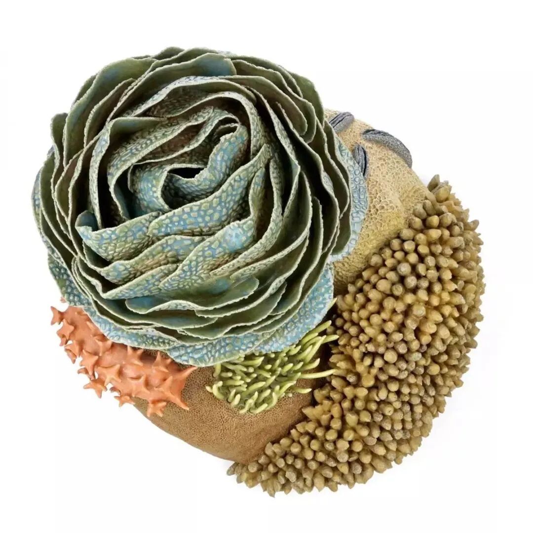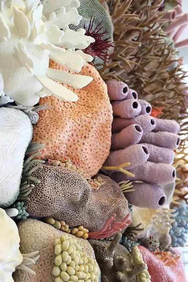 Mattison研究和制作有关海洋保护的作品,也是为了鼓励当政者和市民节约,让我们不断变化的海洋得到改善,努力提高人们对于地球的保护。她从环境科学和海洋生物中寻来灵感,采用珊瑚礁精心制作了一系列模仿大自然之美的雕塑作品。![]()