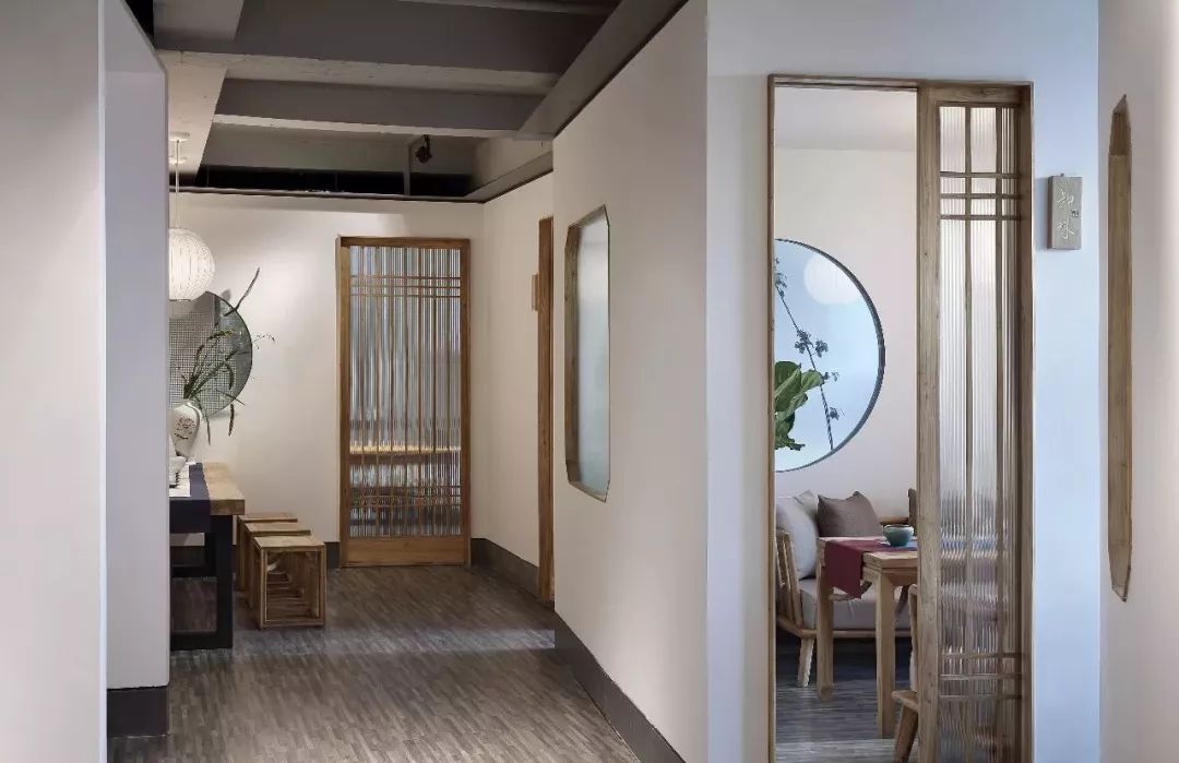 果然·素的内部装饰,采用了大量的木质元素和留白,体现了空间简洁之美,纯净的白色和天然的木色,衬托出大道至简的禅宗精神。