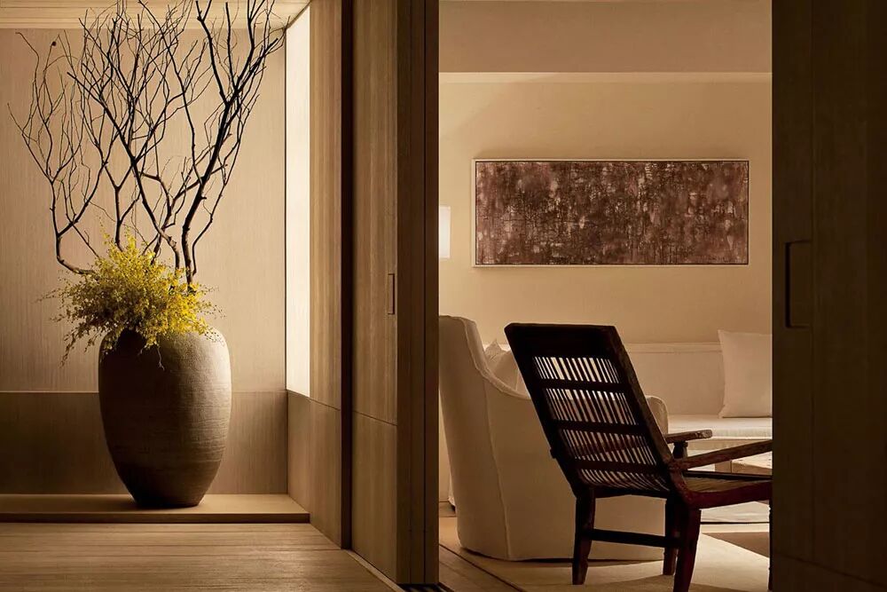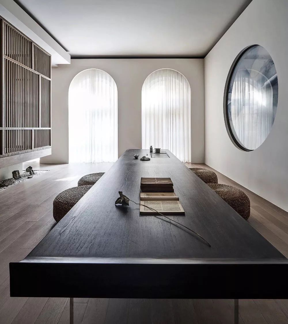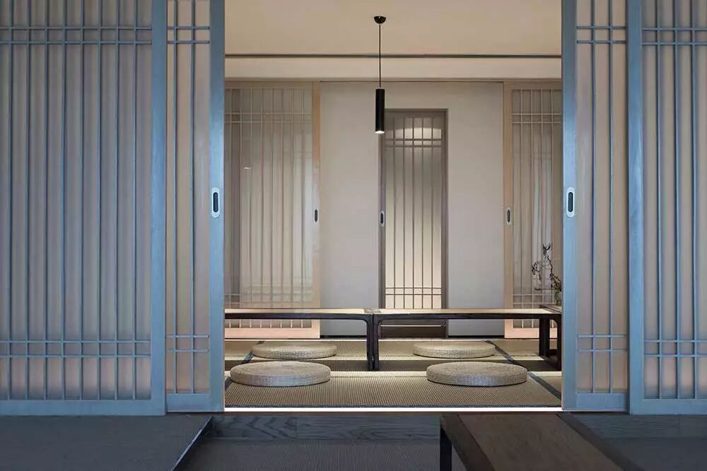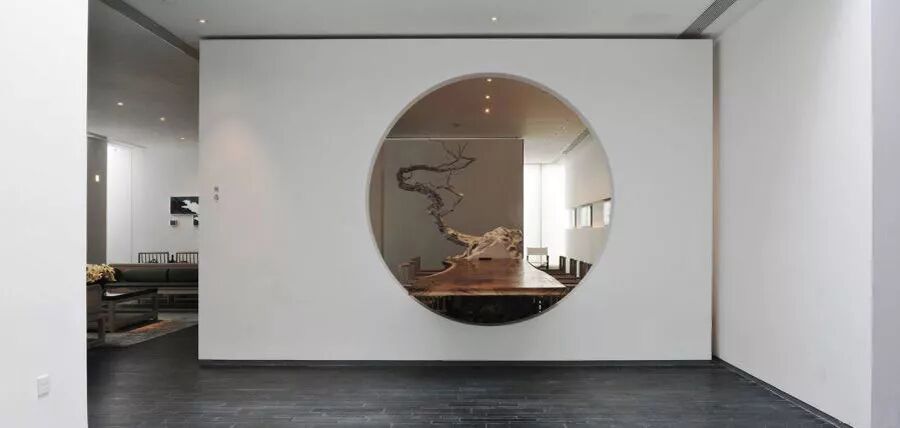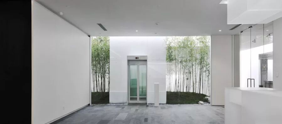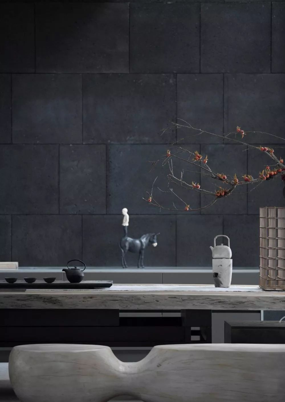 中国文化里讲究留白,但是留白並不代表什么都没有,而是留下充分的想象空间给居住之人。大片的白墙白地砖,穿插着竹子、小景、木桌等传统的中式风格搭配。在现代化的空间里,硬生生的营造出了新中式的极简之美。