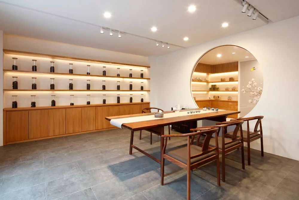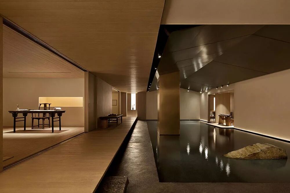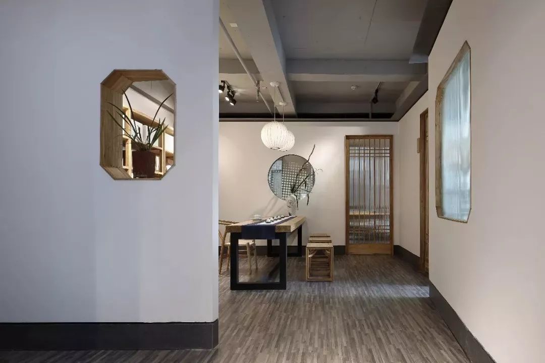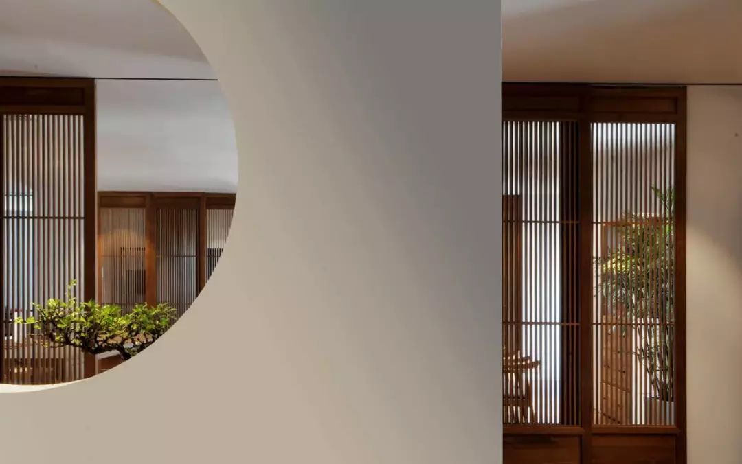 整个设计采用了回游的动线模式,路线不固定,仿佛置身于有花有草、有山有水的苏州园林中,让空间表现出古典园林的开阔感。