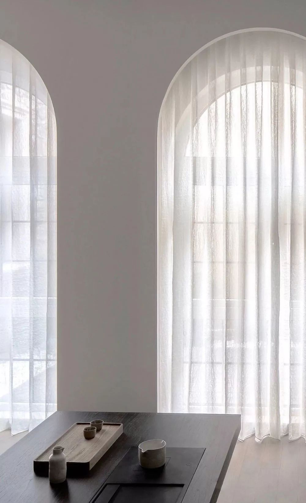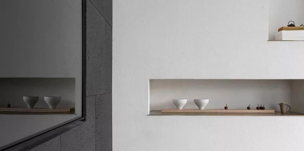 整屋利用黑白灰的颜色铺陈营造出一种治愈氛围,显得温柔而又静谧。每部分颜色自然过渡,协调统一,降低了对人们的视觉刺激,让空间更显高大挺拔。
