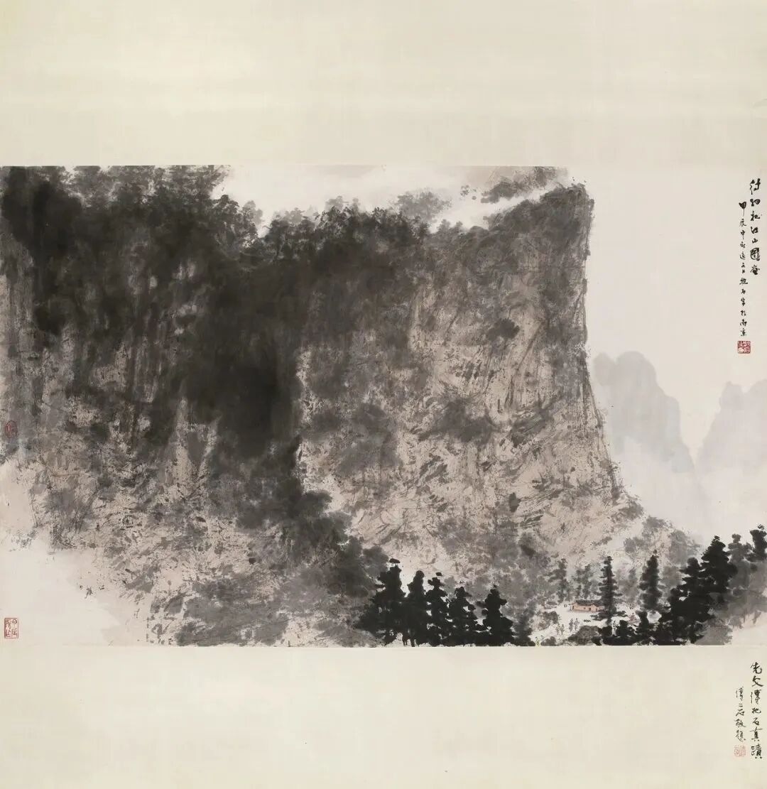 60年代是傅抱石艺术生涯最后的巅峰,本幅《待细把江山图画》款属“庚辰”1964年,他将传统绘画的表达形式转向现代形式化,“读万卷书、行万里路”,以写生创作带动传统国画推陈出新。1961年的一次写生归来,傅抱石谈到感受:“山水画之皴法是从前画家接触真山真水中体会出来的,而不是画家为了好看,就能从画室里凭空想象把‘披麻’、‘解索’画出来的……我到了长白山和镜泊湖等地,亲自感受到了那山水崚峋,使我悟出新的皴法来……。”真山真水的学习无止境,造化更是取之不竭,艺术风格的演变是内外兼修的着力碰撞与层层递进的参悟。“抱石皴”以之自身个性及师自然的契合点,从而有了新的高度。《待细把江山图画》画题出自宋人辛弃疾的《贺新郎》,在傅抱石艺术生涯的最后一个春秋里,画作已臻入境,古人的诗意,时人的心境,皴法的精纯,无不显现画面的苍茫恢蒙,飘洒逸宕,以及扑面而来的磅礴气势。