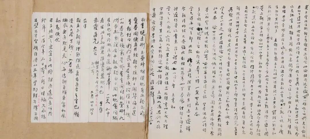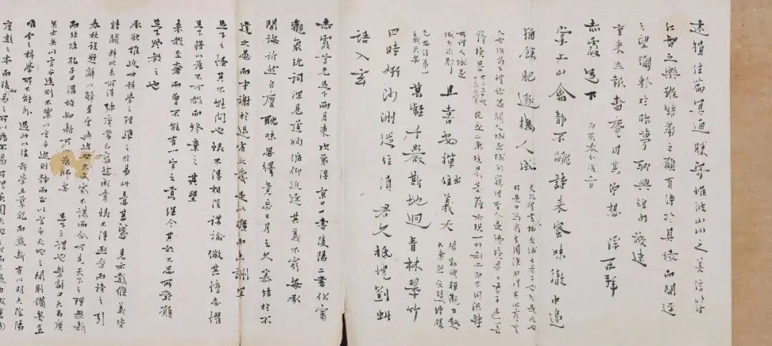 1、本件长卷宽30.5厘米,长535.5厘米。内收马一浮致曹赤霞信札五通;及卷尾有谢无量致曹赤霞信札一通。