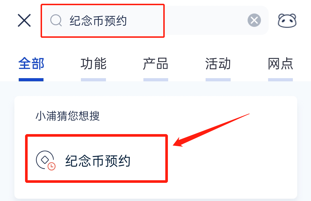第二步:可以直接点击首页广告;或者在上方搜索栏输入“纪念币预约”,点击搜索结果即可进入。