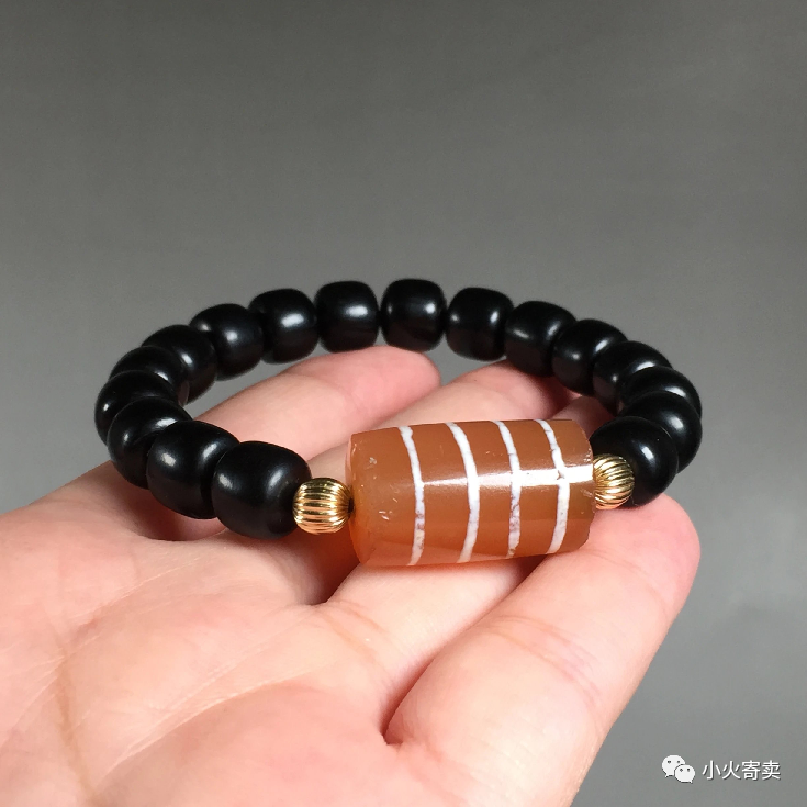 前文说过因为有图腾,因此容易区分年代,那没有镶蚀线图腾的珠子怎么断代呢?通体染色不做镶蚀的珠子,比如我们常见的糖玛瑙,学术叫糖化,当然也有天然颜色的糖玛瑙。