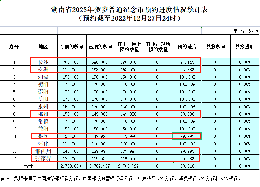 根据长沙分行的公告,截止到27日24时,个别地区还没全部预约完,但余量不多,可以试试。