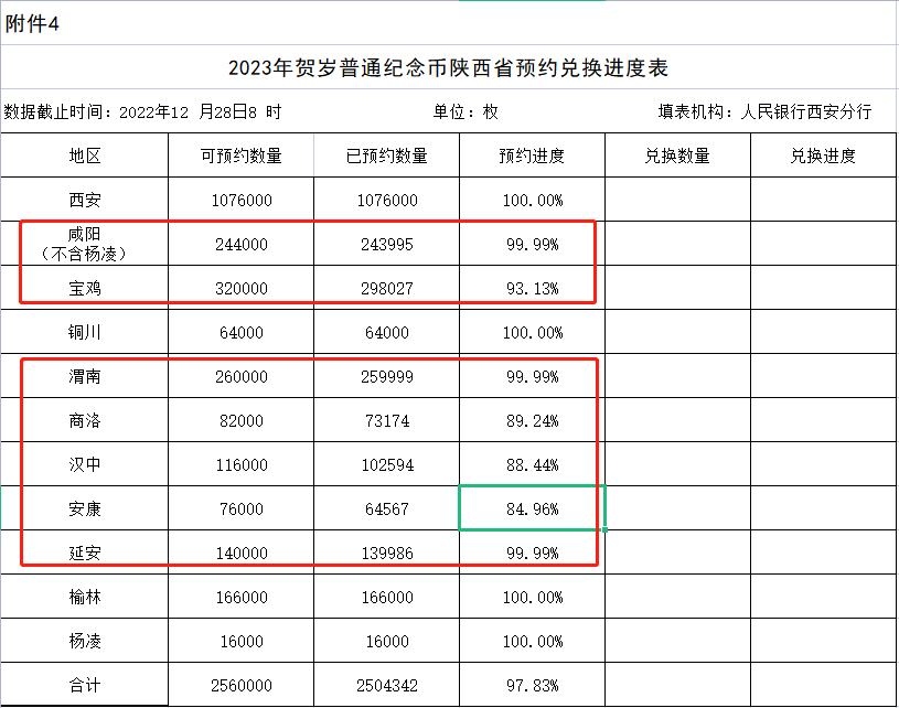 根据西安分行的公告,截止到28日8时,还有很多地区有预约数量。