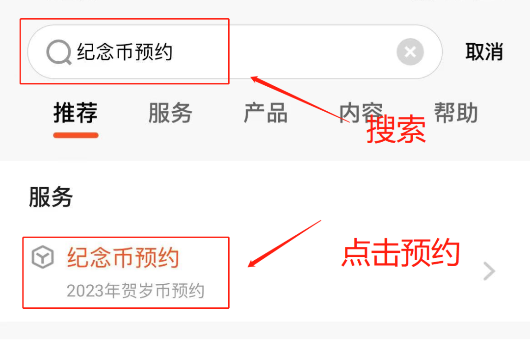 第二步:在首页搜索框内搜索“纪念币预约”,再点击“纪念币预约”即可。