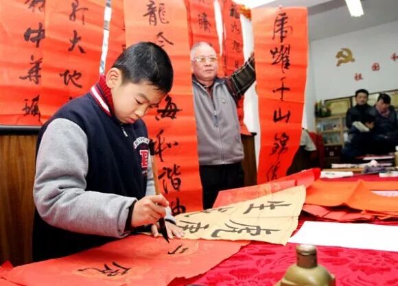 全家人一起买宣纸、写春联、写福字其乐融融,可大大提升亲情关系。通过手写春联可以把对新春、对亲友、对未来的情感通过春联进行表达抒发,同时可以让孩子们利用这个机会练练字。