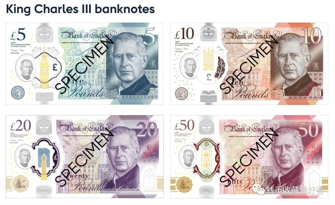 尽管随着科学技术的发展,人们越来越多地使用银行卡、数字支付等方式进行日常消费,现金的使用频率大不如前。但人们依然对纸币的设计抱有浓厚的兴趣,可以想象,当新版印有查尔斯国王的纸币发行时,必将引起纸币收藏爱好者的关注。