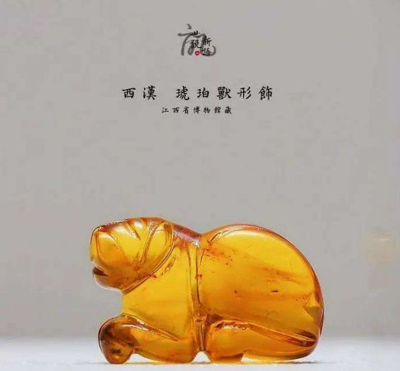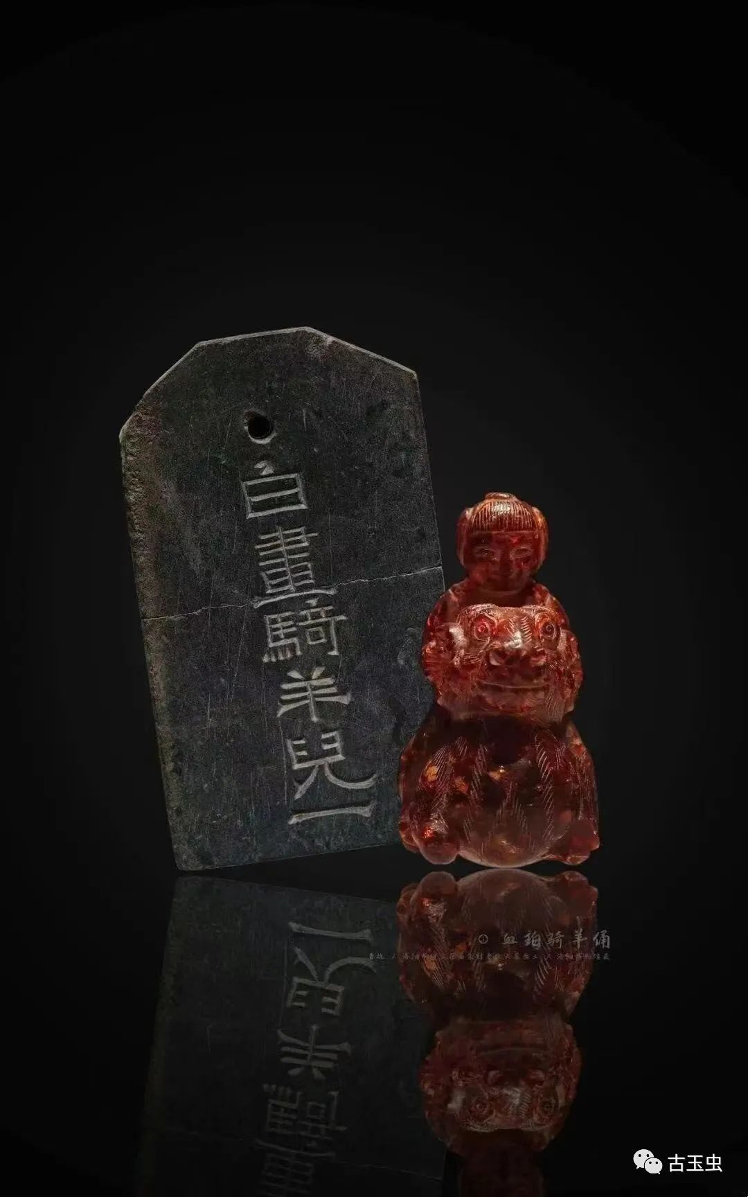 2018年,在刘贺早夭的长子刘充国墓中,再发现了一大一小两只琥珀兽。不过比老爹刘贺更土豪,这两只的材质,是血珀。