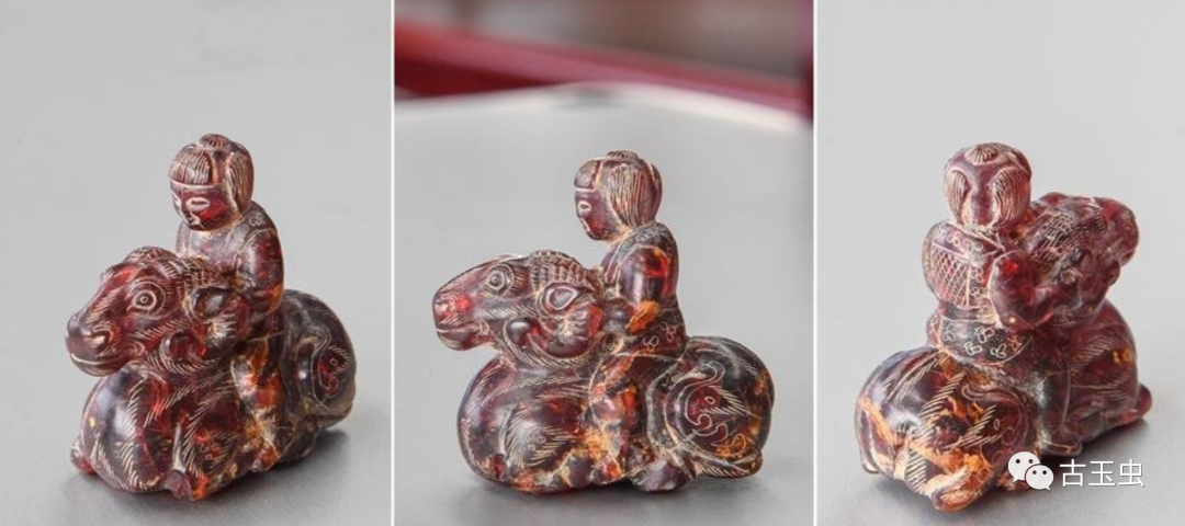 血珀骑羊俑,三国魏(220-265年),河南省洛阳市伊滨区西朱村出土,洛阳市文物考古研究院藏。