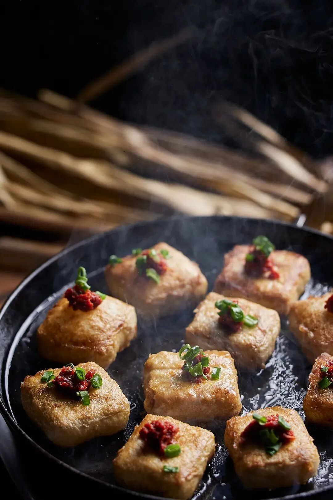 看着虽有些瘆人,但经煎炸之后,表面的绒毛消失了,一层金黄酥脆的皮包裹着腐乳一般的半固体,又软又绵,略带苦味,蘸着酱料吃会很难吃出苦味,而口有余香,总之是一种很奇特的味道,让人难忘。
