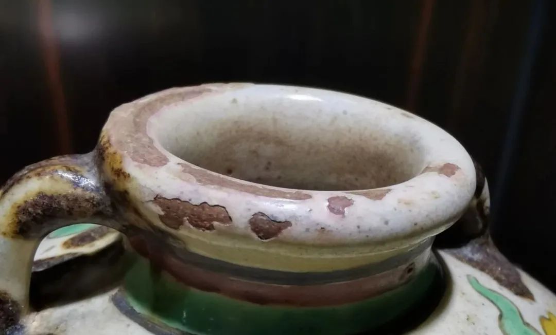 15:瓢、翘、歪。在很多明代器物上面可以看见,这是由于各部位胎体厚度、含水率等原始情况不同,在入窑烧制时,会发生收缩变化差异而产生“瓢”、“翘”、“歪”的现象。简单的就是盘碗反扣会看到口沿不平整,瓶子的头颈发生歪曲(行内有十瓶九歪一说),这些都可以在其他鉴定条件都是否满足时,再加上这一土办法进行鉴别,进而可以强化和加减判断特征的参考鉴定要点。