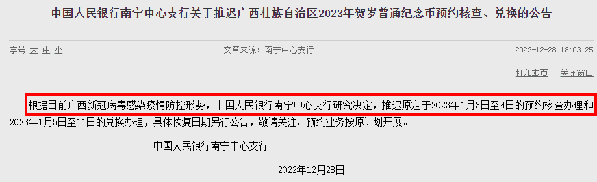 另外,重庆辖区已预约成功的兔年今年币将于2023年2月8日~2月14日期间办理兑换。