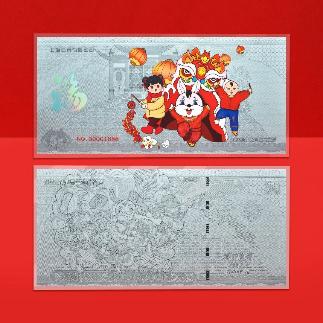 2023癸卯兔年贺岁金银钞,由上海造币权威发行,金钞发行量5000套,银钞发行量1万套。