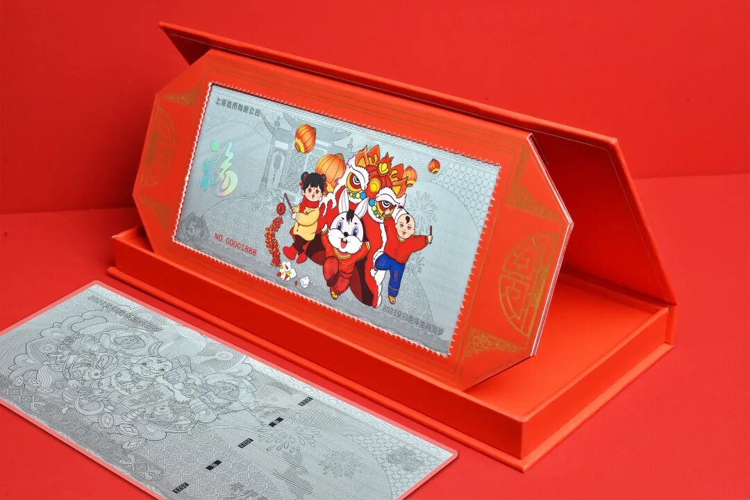 背面采用瑞兔呈祥荧光工艺,精美至极!这样一套吉祥又喜庆的金银钞,拿去送礼走心又有面子!今年不仅规格升级,包装设计也更讲究,红彤彤的红包设计,烫金制作,看着就高大上。