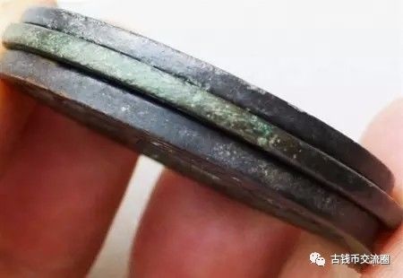 出于河南.主要特点:钱型大,直径都在2.6左右,锈色单一,基本都是浮土下一层绿锈,有些做得稍好一些的还做成几枚钱粘在一起剥落后的样子,很能迷惑。