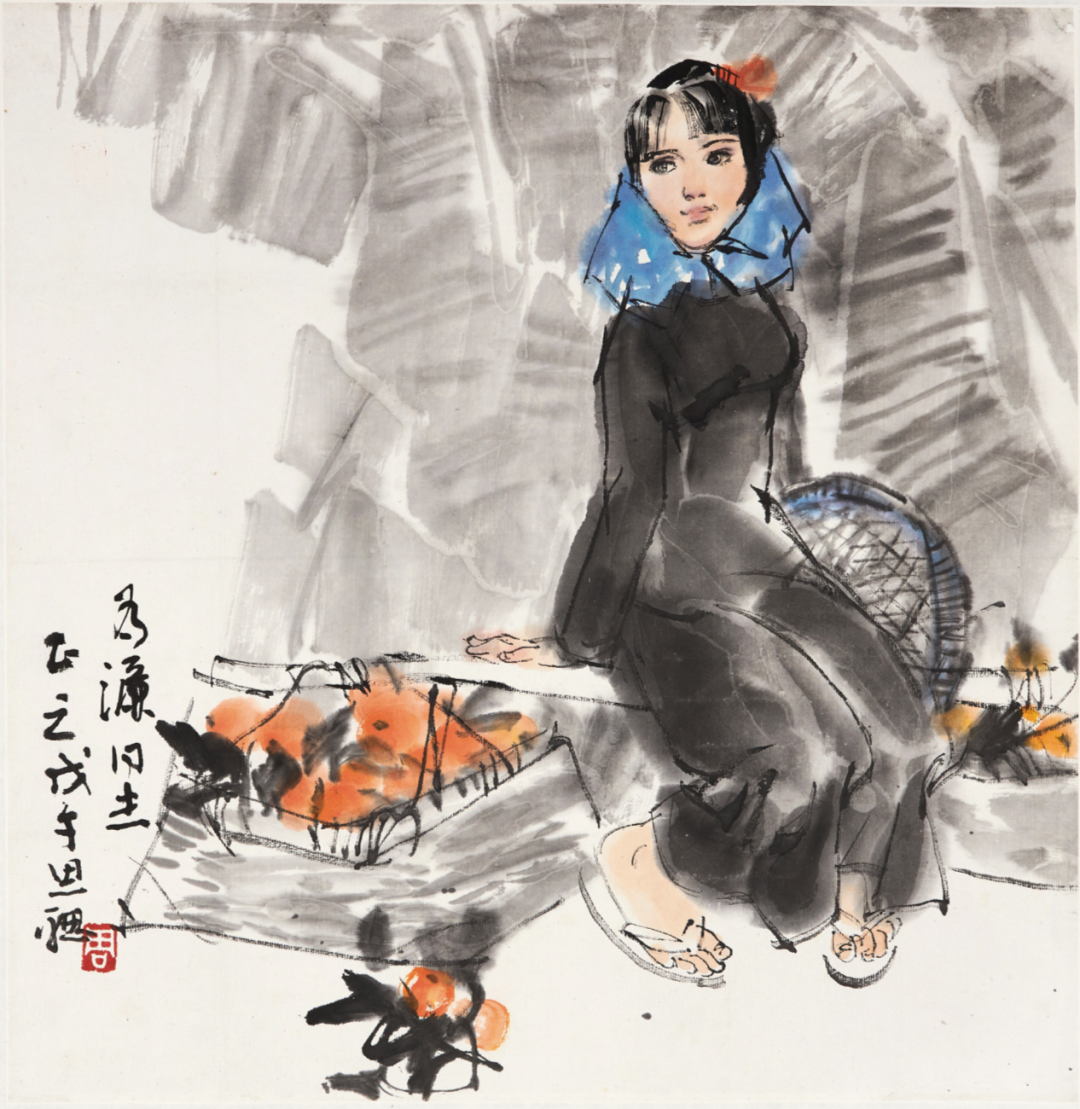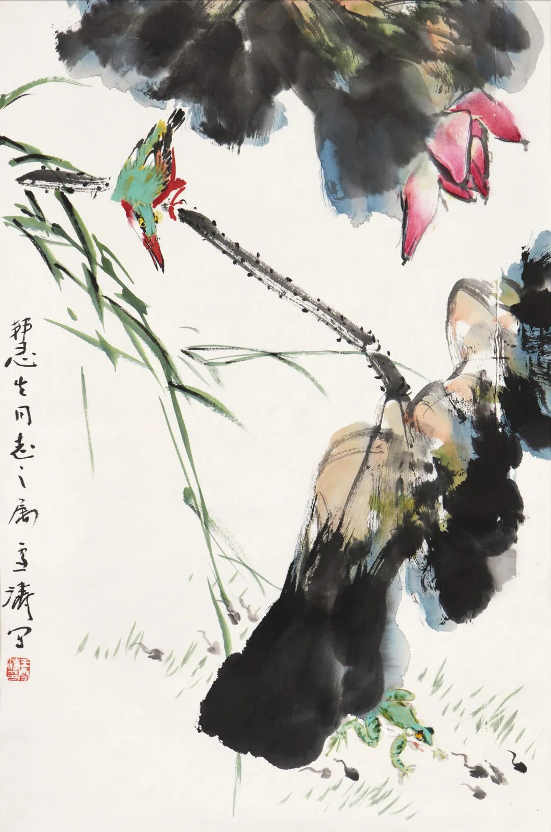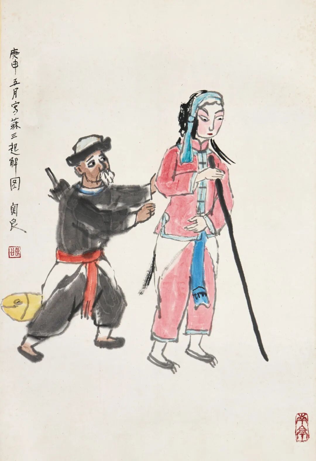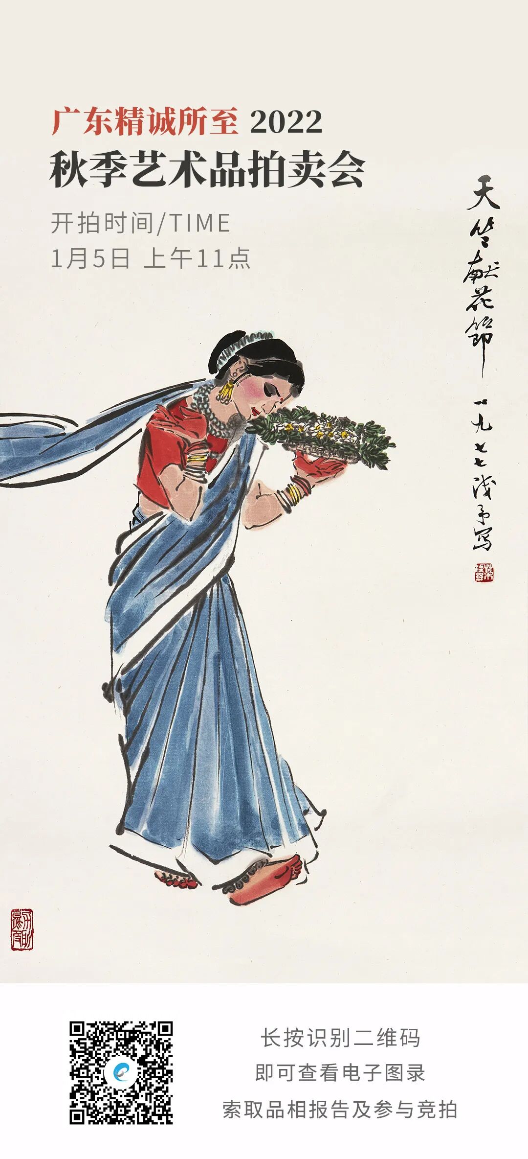 8印,1277页)关良的《苏三起解》画中人物以简练的造型能力和传统的写意笔墨巧妙结合,画作意趣取径文人画的疏放简约,生动传神的人物神情跃然纸上。袁松年此帧写牧人手牵二骆驼行于城郭外之路上,山石方硬,草木稀少,人迹罕见,设色以赭石为主,与写塞外的画题十分帖合。骆驼与牧人描写逼真,似从写生而来,这在袁松年存世的画作中都是很难得一见之品,希藏玩者珍之。此帧作于1978年,画中少女头眼神清澈明亮,似乎有着刚刚农作后的疲倦,又好像在等待着什么。人物的轮廓与五官、衣褶,竹篓等,无不展示周思聪极强的造型表现能力。呈现出了一种舒适的乡村气息,画面朴素自然而又有着独特的风情,令人过目不忘。拍品估价:100,000 - 150,000 人民币出版:人民美术出版社出版《中国花鸟画大师王雪涛画集》P70—71,2003年。此帧为王雪涛先生所不多见的海河鲜题材,新颖独特。此作于2003年在人民美术出版社出版的《中国花鸟画大师王雪涛》中出版。画中那只螃蟹最抢眼,已经是被煮熟的状态下却似乎依然挥舞着它残缺的腿,构图巧妙,聚散有序。画中没有背景,河鲜似有一种挣扎后的疲倦在其中,画面富有内涵,令人引发出无限的遐想与思考。拍品估价:80,000 - 100,000 人民币说明:上款人为张登堂(1944—2015),山东聊城人。师从李可染、李苦禅等学习创作,善山水画。中
