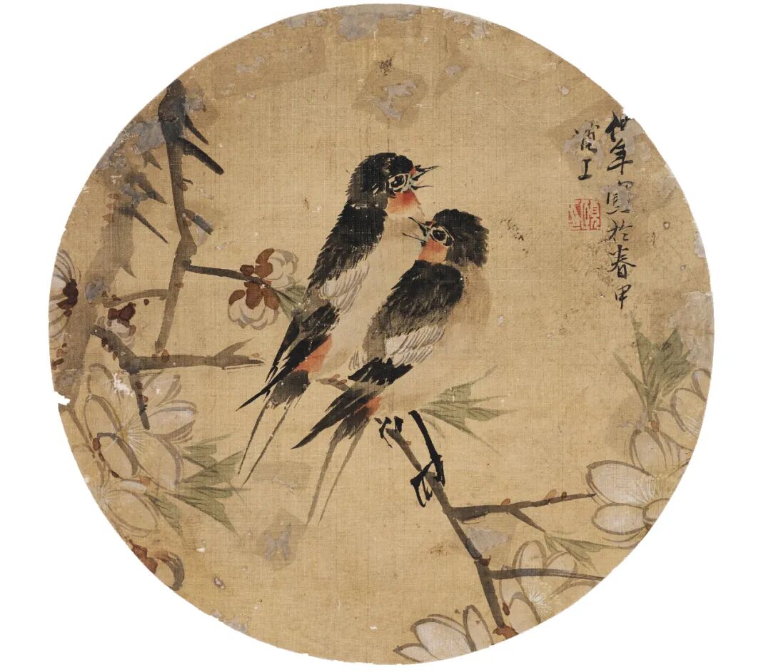 兄雅正。西津顾麟士。背面释文:天工剪刻为谁妍?抱蕊游蜂自作团。把酒惜春都是梦,不如