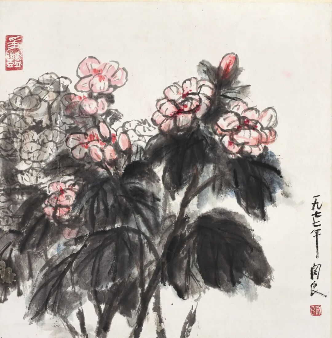 (2印参见《近现代书画家款印综汇》1印,1276页)出版:上海人民美术出版社出版《关良》,P257,2009年。(出版物尺寸有误)关良通过描绘有形的花叶,表达出无形的醉人春风和隽永的春意。此幅作品经可靠出版,值得关注。钤印:关良(白文)