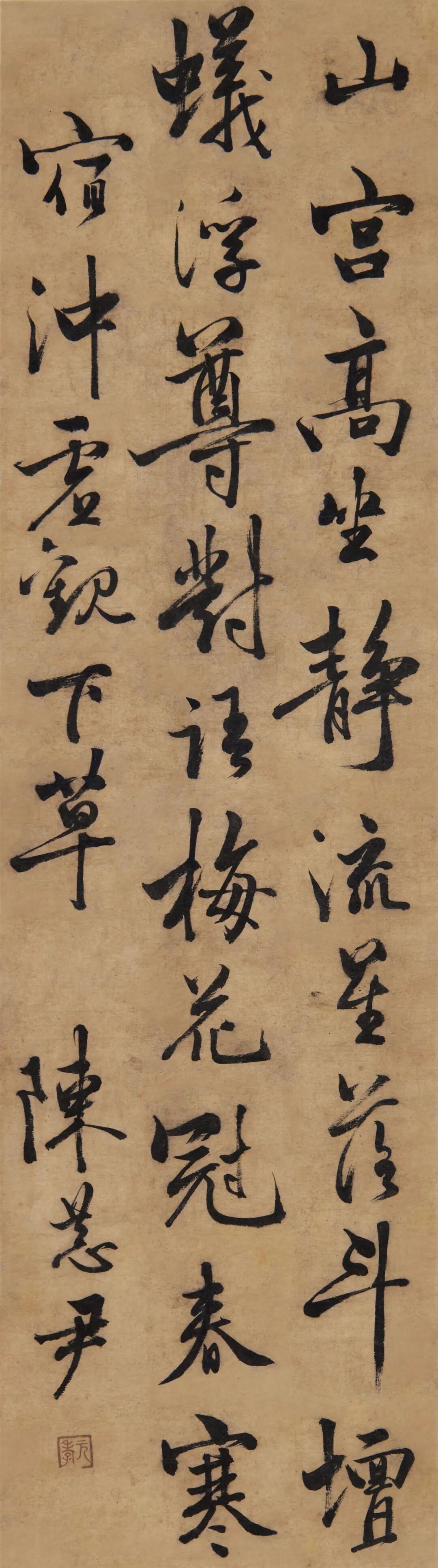 集〉,2014 年。冒襄(1611-1693)为“明季四公子”之一,他十四岁就与董其昌相交往,董其昌亦对其诗文、才华非常赞赏。冒襄十四岁时刊行的个人诗集《香俪园偶存》,董其昌为其作序,可见一斑。冒襄除诗文外,于书法亦向董其昌多方取益,董亦不吝赐教。后又取法二王、米芾、怀素,变化出入,故其书法亦别具一格。此《水绘园湘中阁同王阮亭先生望雨歌》一诗,出版在《冒辟疆全集》。此书笔意飞动,潇洒流落,一气贯注。书体极典型。拍品估价:150,000 - 300,000 人民币释文:山宫高坐静,流星落斗坛。蚁浮尊对语,梅花冠春寒。明亡,陈恭尹父陈邦彦因抗清被执,与陈子壮、张家玉一起,被尊为“岭南三忠”。丧亲之痛,延续到陈恭尹晚年,仍无法释怀。父亡后,陈恭尹初亦为报家仇而参加反清斗争,失败后定居在广州城南。移志于诗词歌赋的创作,与友人结成诗社相互唱和,被时人称为“岭南七子”。