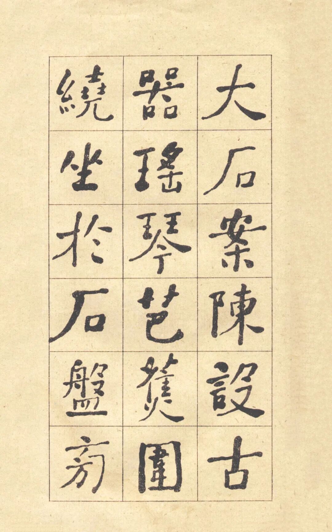 【释文】李伯时效唐小李将军为著色泉石,云物草木花竹皆绝妙动人,而人物秀发,各肖其形,自有林下风味,无一点尘气,不为凡笔也。其乌帽黄道服捉笔而书者,为东坡先生;仙桃巾紫裘而坐观者,为王晋卿;幅巾青衣,据方几而凝视者,为丹阳蔡天启;捉椅而视者,为李端叔;后有女奴,云环翠饰侍立,自然富贵风韵,乃晋卿之家姬也。孤松盘郁,上有凌霄缠络,红绿相间。下有大石案,陈设古器瑶琴,芭蕉围绕。坐于石磐旁,道帽紫衣,右手倚石,左手执卷而观者,为苏子由。团巾茧衣,手秉蕉箑而熟视者,为黄鲁直。幅巾野褐,据横卷画渊明归去来者,为李伯时。披巾青服,抚肩而立者,为晁无咎。跪而捉石观画者,为张文潜。道巾素衣,按膝而俯视者,为郑靖老。后有童子执灵寿杖而立。二人坐于磐根古桧下者,幅巾青衣,袖手侧听者,为秦少游。琴尾冠、紫道服,摘阮者,为陈碧虚。唐巾深衣,昂首而题石者,为米元章。幅巾袖手而仰观者,为王仲至。前有髯头顽童捧古砚而立,后有锦石桥、竹径,缭绕于清溪深处,翠阴茂密。中有袈裟坐蒲团而说无生论者,为圆通大师。旁有幅巾褐衣,为刘巨济。二人并坐于怪石之上,下有激湍潨流于大溪之中,水石潺湲,风竹相吞,炉烟方袅,草木自馨。襄阳题西园雅集图小楷极精轶,堪与坡公小楷前后赤壁赋并美。蝯叟试书。