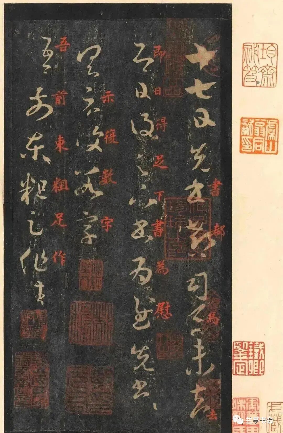 正因米芾好帖,故其所收《兰亭序》摹、拓、刻本颇为丰富。不过,收藏除必要之财力与鉴识力外亦赖机缘,而心仪之物亦未必皆能收入囊中。如宗室赵叔盎家之《兰亭》,米芾论为虽不及其所收之本,不过却在苏家第三本即唐粉蜡纸摹本之上,且为汴京城内《兰亭》最佳摹本,故『今甚思之,欲得此以自解』。[12]而对于程师孟以『四十千』所购之《兰亭》,米芾欲做一观而师孟竟不取来[13],此亦为其在《书史》中记下。米芾乃性情中人,而无论得获与否,此亦皆是其与《兰亭》之一段故事。