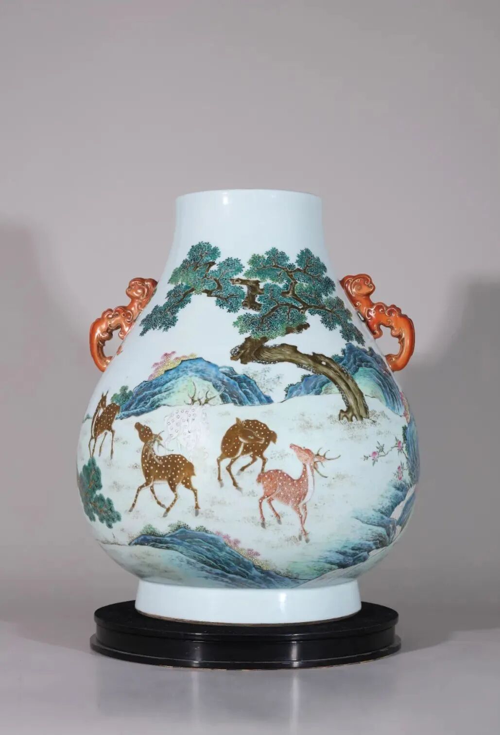明星展品有“清乾隆 御制洋彩胭脂红地轧道雕瓷镂空“有凤来仪 百鸟朝凤”图双螭耳大转心瓶”,也有十年后再次公开亮相的“清乾隆 御制洋彩胭脂紫地番莲花卉套炉钧釉双象耳转心瓶”。