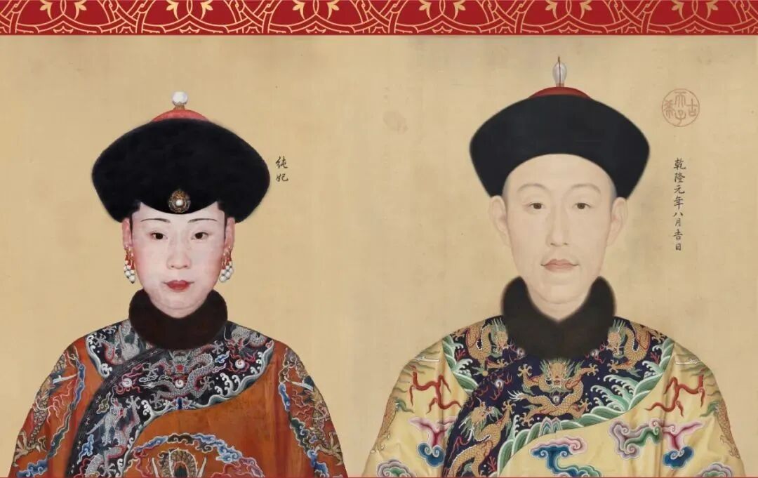 乾隆御极初年,郎世宁曾绘制一组帝后御容,即现藏美国克利夫兰博物馆近七米的绢本长卷《乾隆皇帝及后妃像》(又称《心写治平图》卷),为乾隆皇帝及后妃共十三人的半身画像,并御笔“乾隆元年八月吉日”及后妃的位份。所绘十二位后妃中,皇后富察氏、贵妃高佳氏、纯妃苏佳氏、嘉妃金佳氏、婉嫔陈氏……皆为乾隆帝王后宫生活中最初的成员——纯妃排位第三。