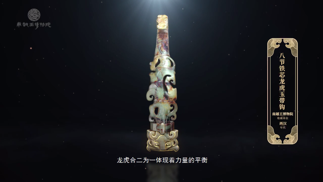 铁芯玉带钩体现了古人高超的金属和玉器镶嵌工艺。龙虎合二为一体现着力量的平衡,也象征着使用者的尊贵地位。