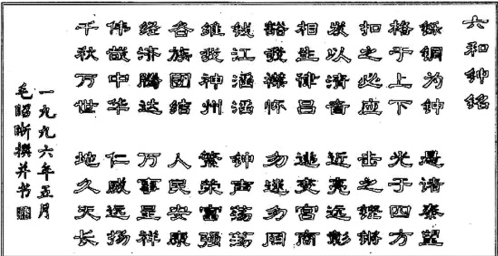 他作四言铭文,共12句96字,写得典雅韵致,毛笔隶书,柔婉端严。有一句,打草稿时,始拟“屹立东方”,继换“威灵远扬”,后改定“仁威远扬”。女儿讲,96个字,爸爸十十足足写了一个月,改了无数次。
