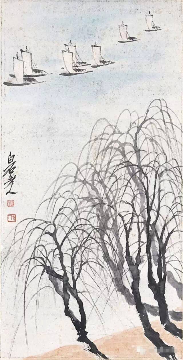 白石老人的山水画,每一笔似乎都含着家乡的泥土气息,每一根线条似乎都凝结着大自然的露珠。他的真意在笔墨与观者的巧妙共鸣之间激发,读者会很自然地品尝到画里画外的个中滋味。