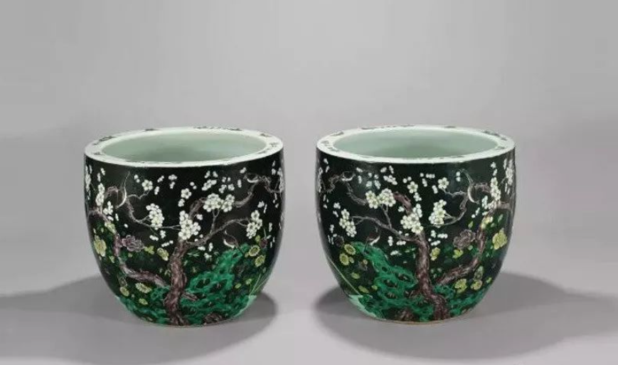 于是各王公大臣府第,钟鸣鼎食之家,为了炫耀其门第高贵,相互间迭有攀比, 故而不惜重金提供最好的画本、顶级的画师、优质的彩料等等,务求产品出类拔萃,甚至高出官窑之上,以达到死者风光,生者荣耀的目的,所以才有了墨地素三彩瓷这种陶瓷史上的璀璨明珠。