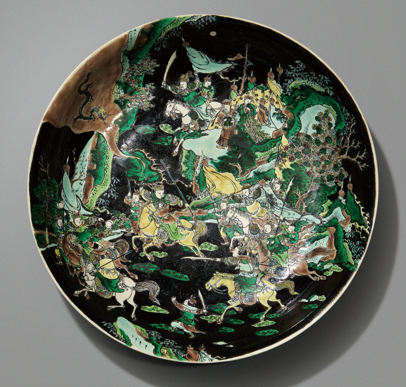 一般来说,官窑瓷器都是专供宫廷和统治阶级使用的,做工精美且具浓厚历史意义,而民窑只是生产百姓们所使用的日用瓷和陈设瓷,历来官窑瓷身价远在同期民窑之上。但康熙时期的墨底素三彩却是一个例外……