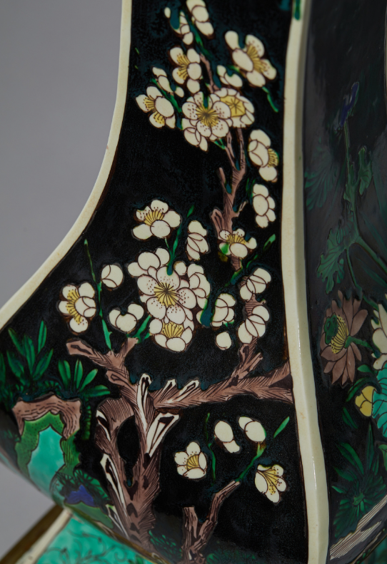 虽然墨地三彩创烧在康熙年间,与现代并不久远。但除了后世的仿制品,原版只有康熙朝烧制,留存于后世的真品极其稀少。据说国内的各大博物馆几乎没有完整的墨地三彩器物,哪怕是残器。