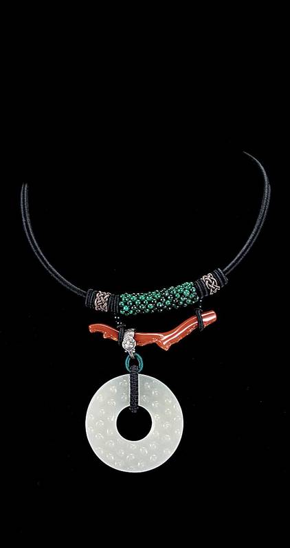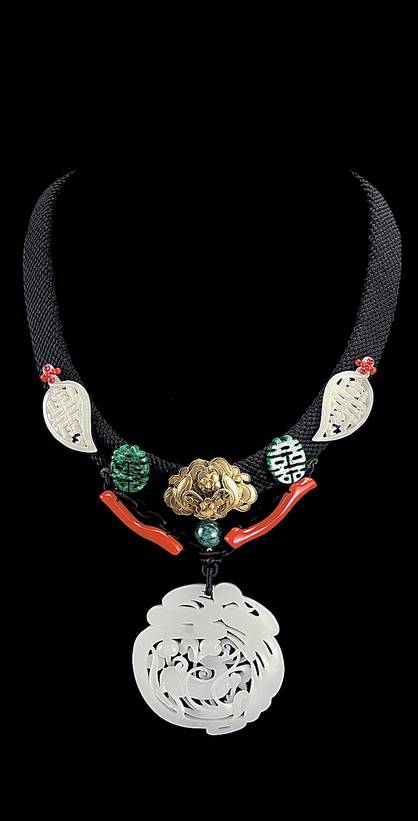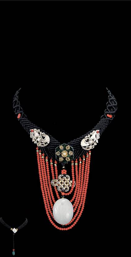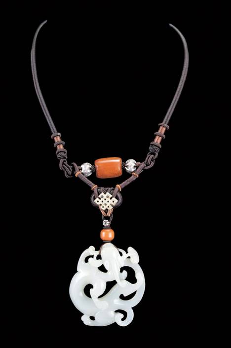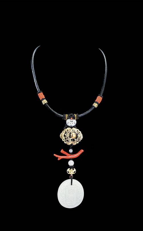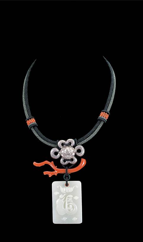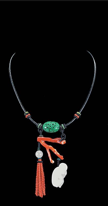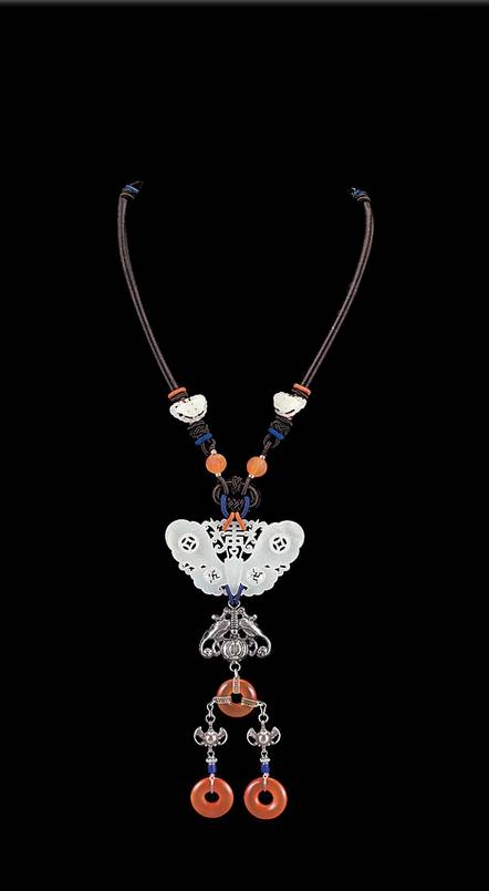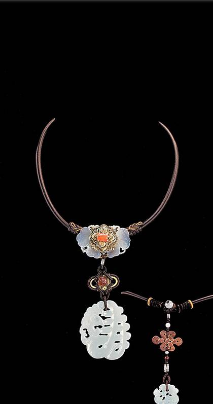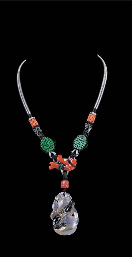 玛瑙连年有余配双喜翡翠珊瑚项饰
