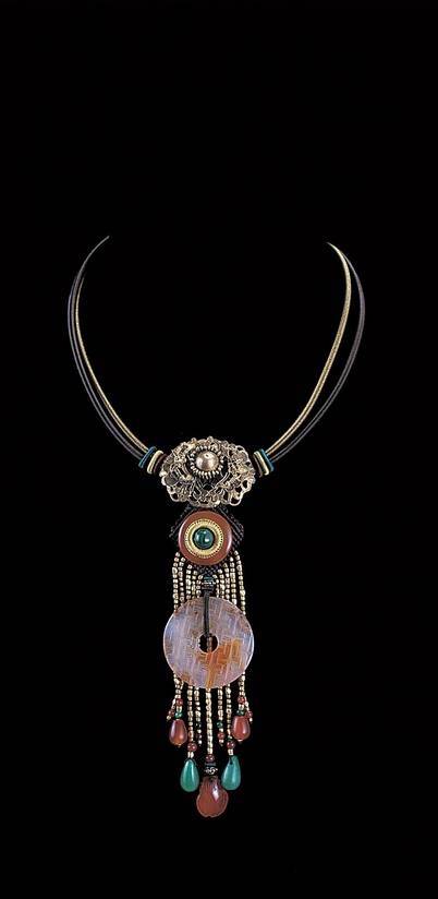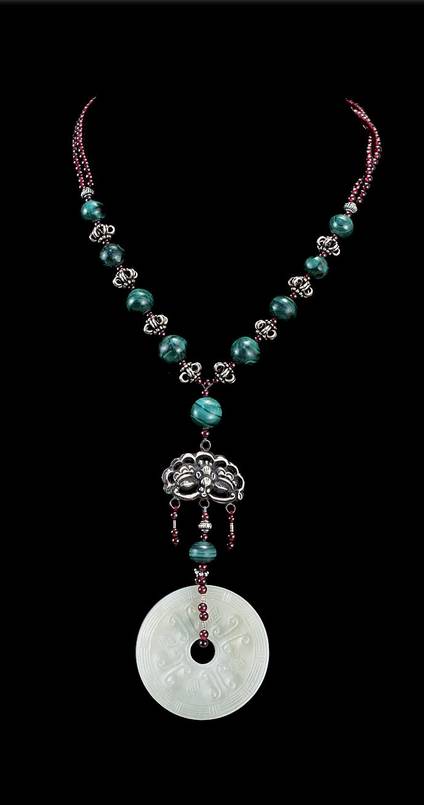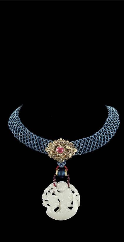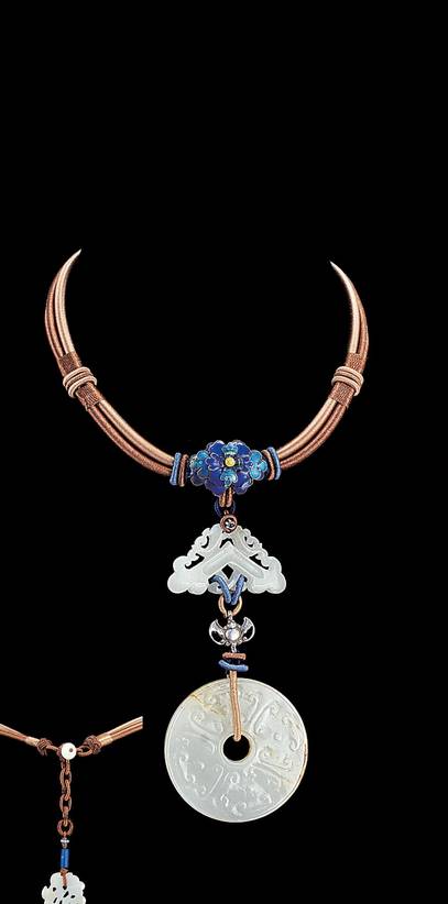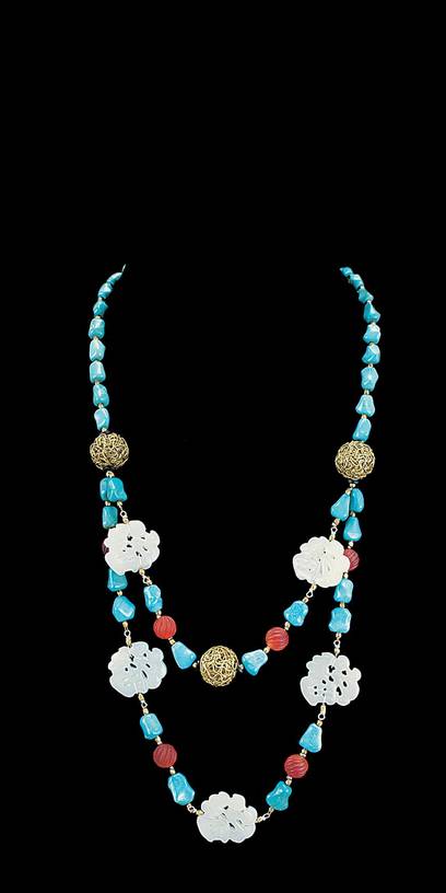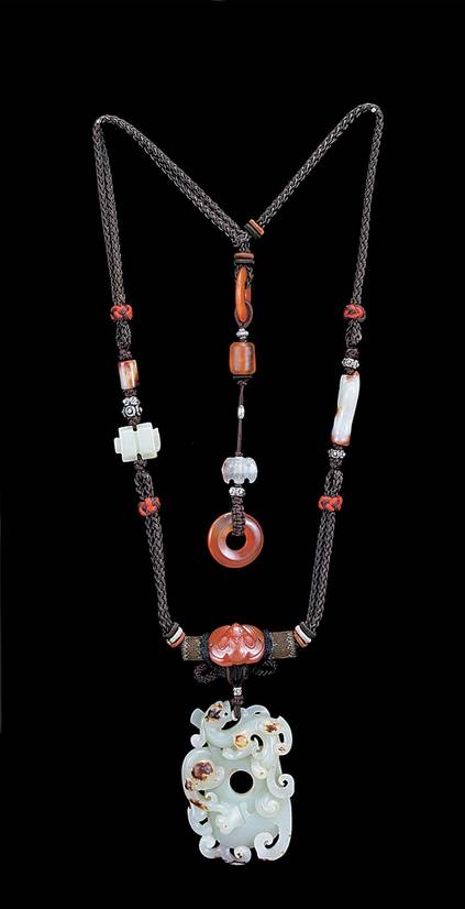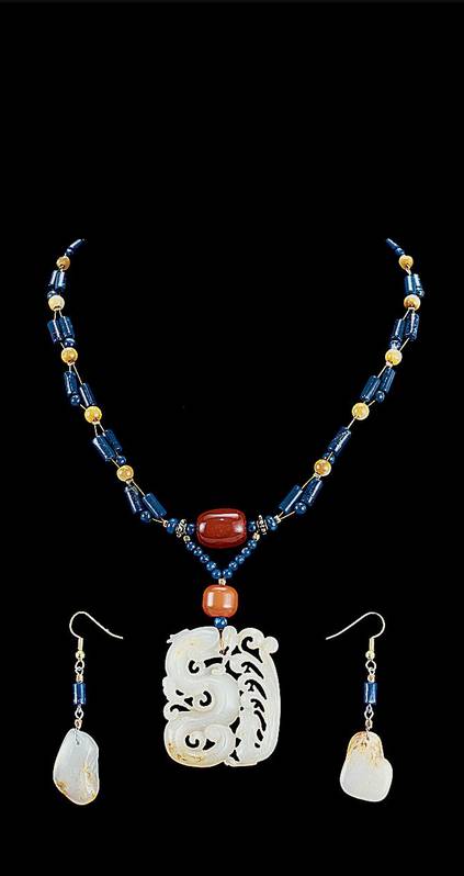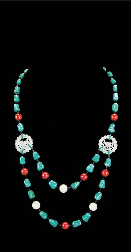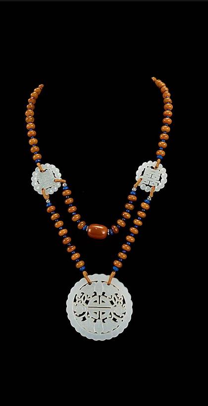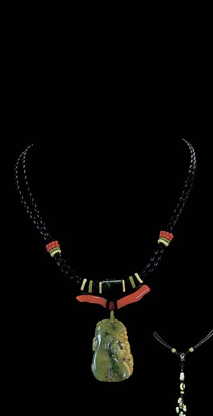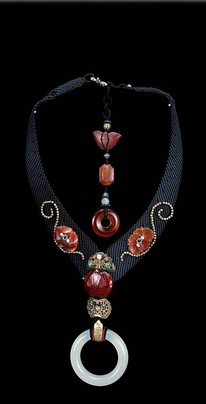 玛瑙连年有余配双喜翡翠珊瑚项饰