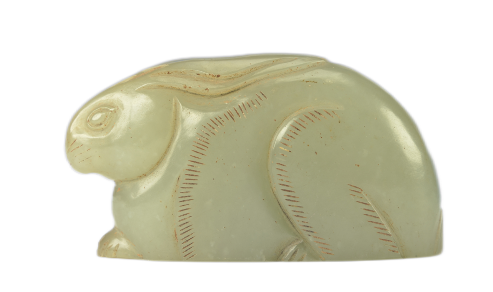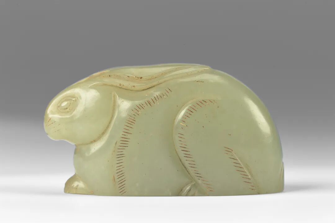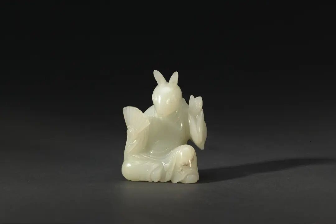 十二支神是指十二地支的守护神,对应十二生肖的形象,其中玉兔是清晨5点至7点卯时的守护神。本品为上海博物馆所藏一组玉雕兽首人身十二支神坐像中的一支。