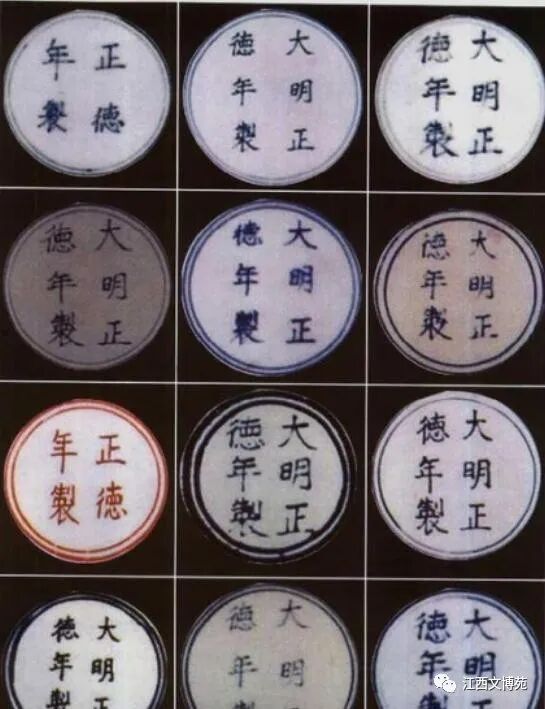 明清两代瓷器上的款识字体,晚清及民国能够仿得十分逼真,极难辨识,必须同时仔细比较其字体及位置,以及与其他鉴定手法相结合,才不至于判断失识。图为大明正德年制真品的款识。
