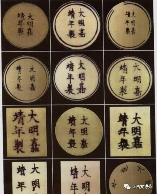 图为大明嘉靖年制真品的款识。留存至今的传世品中,以明清两代瓷器居多,而明清官窑绝大部分都有年款,并且各有其特征。近世所仿的古瓷,也多是仿明清官瓷器。因此通过瓷器上的款识来识别瓷器的真伪是顺理成章的事。