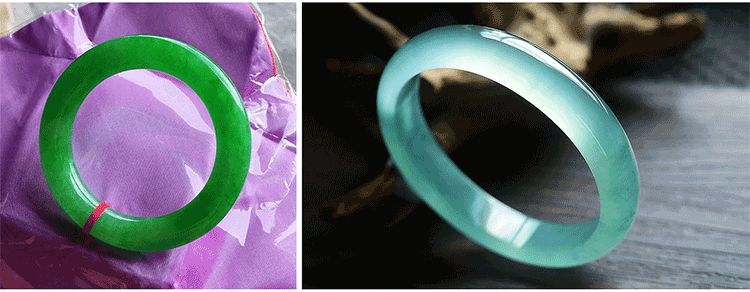 下面这三个手镯,都是水润清透且有底色,都好看,但是最下面的相对来说内部棉理结构多了一点,中间的跟上面的一块料下来,都是冰春彩,不过中间的光泽程度不及上面的,所以价格从上到下就是两万左右、一万左右、几千。