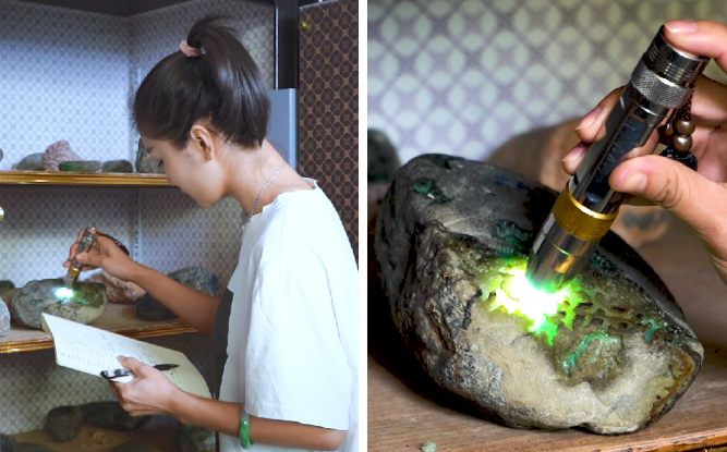 我能够以第一手的价格拿到翡翠原矿石,再结合宝石的特点,设计、打磨到成品,所有流程都是我们自家完成,我每天都会在朋友圈发一些不同款式的翡翠饰品、摆件。