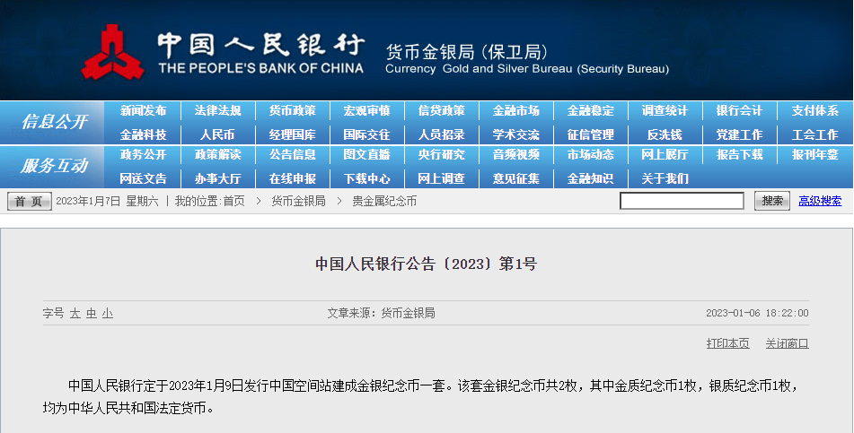 原本计划在2022年发行的”中国空间站建成金银纪念币“,在2023年年初,终于迎来了公告!